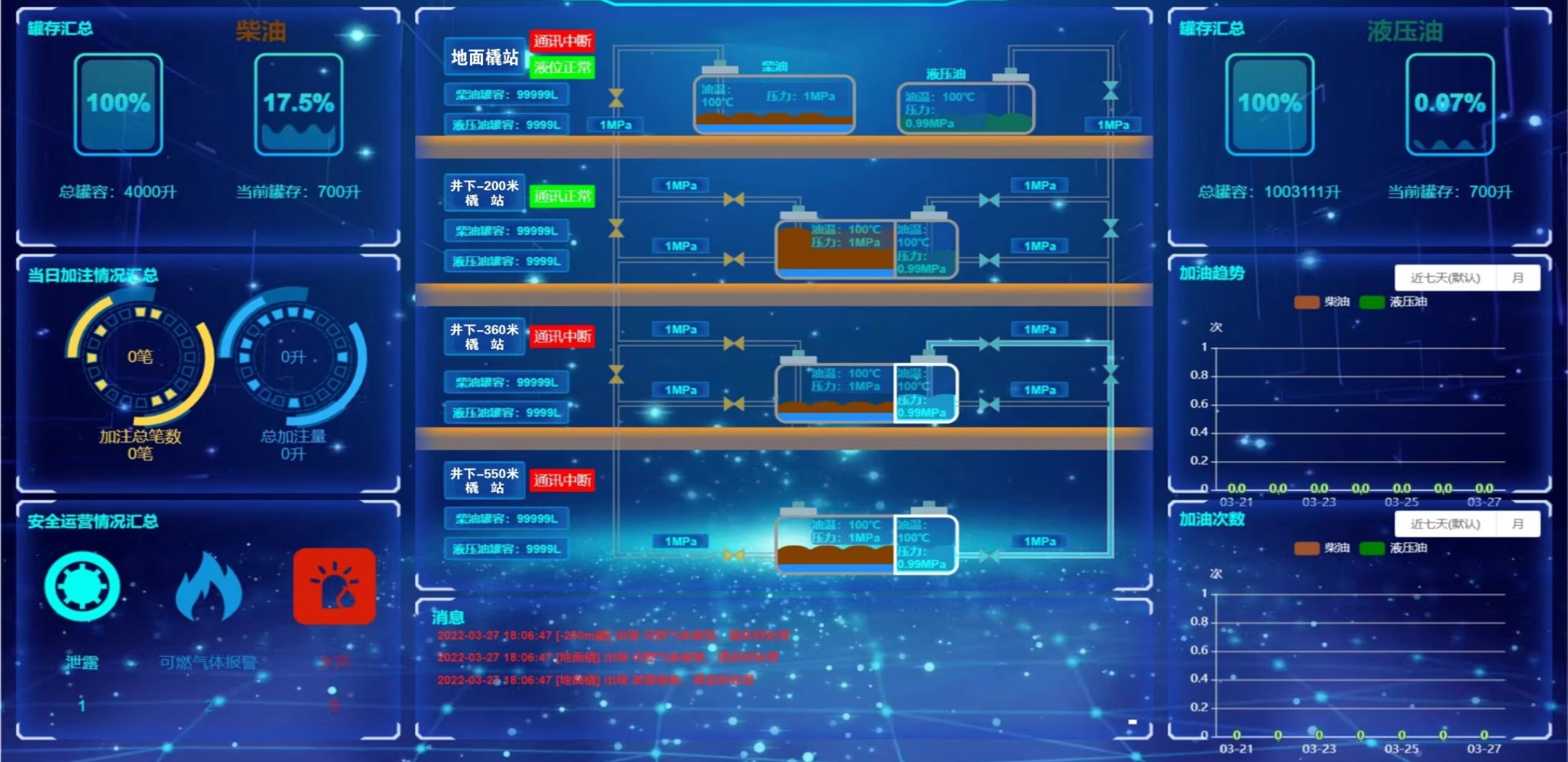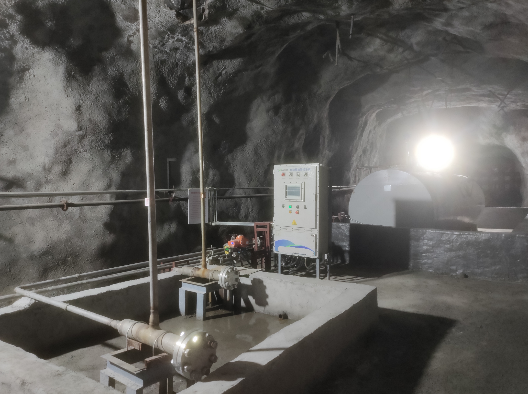 凡口鉛鋅礦井下680米智能供油系統(tǒng) 目前正有序施工中, 預計9月底完工并投入使用。該項目為全國首創(chuàng), 由韶關(guān)企業(yè)進行技術(shù)攻堅 并申請多項國家專利, 擬申報吉尼斯世界紀錄 “全球最深的智能供油系統(tǒng)”。 凡口鉛鋅礦井下智能供油系統(tǒng) 需在地面設(shè)置橇裝加油裝置, 并分別在地下 330米、480米和680米處 建設(shè)智能化供油系統(tǒng), 通過鉆孔鋪設(shè)輸油管線, 將油品從地面輸送到井下。 地下330米智能加油點, 目前已進入收尾階段, 現(xiàn)場有兩根 從地面裝置接下來的輸油管, 用于工程車加油, 另一邊也有兩根輸油管輸送到 地下480米和680米的智能加油點。 別看油管很細,鉆孔不大, 但施工難度并不小, 全長3千多米的輸油管, 垂直打孔偏差不能超過1米。 作為亞洲最大的 單體鉛鋅銀礦生產(chǎn)基地, 凡口鉛鋅礦 有井下工程車輛和設(shè)備100多臺, 井下用油量大。 井下智能化供油系統(tǒng)啟用后, 不僅解決井下用油安全、環(huán)保風險, 同時降低生產(chǎn)用油成本, 推進凡口鉛鋅礦建設(shè)智能化礦山, 實現(xiàn)“無人開采”。 如果鉆孔偏差太大,就找不到鉆下來的孔,影響輸油管道的布設(shè),增大成本。3千多米有5千多個焊接點,所有的焊接口都要達到高壓管道的焊接要求,這個項目是全國首創(chuàng),在全國所有礦山企業(yè)中,我們是首次使用通過輸油管道往井下輸油,并且實現(xiàn)智能控制的方案。 這個月底把地下330米加油點完工,開始加油,9月底把底下480米和680米開通使用。希望通過這個項目打造創(chuàng)新科技的韶關(guān)樣板,把先進的經(jīng)驗和技術(shù)推廣到全省、全國乃至全球。
